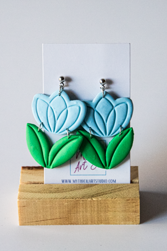 These beautiful earrings are handmade from polymer clay and an assortment of different kinds of beads. Each pair is unique and one-of-a-kind, and they are sure to add a touch of personality to your outfit.